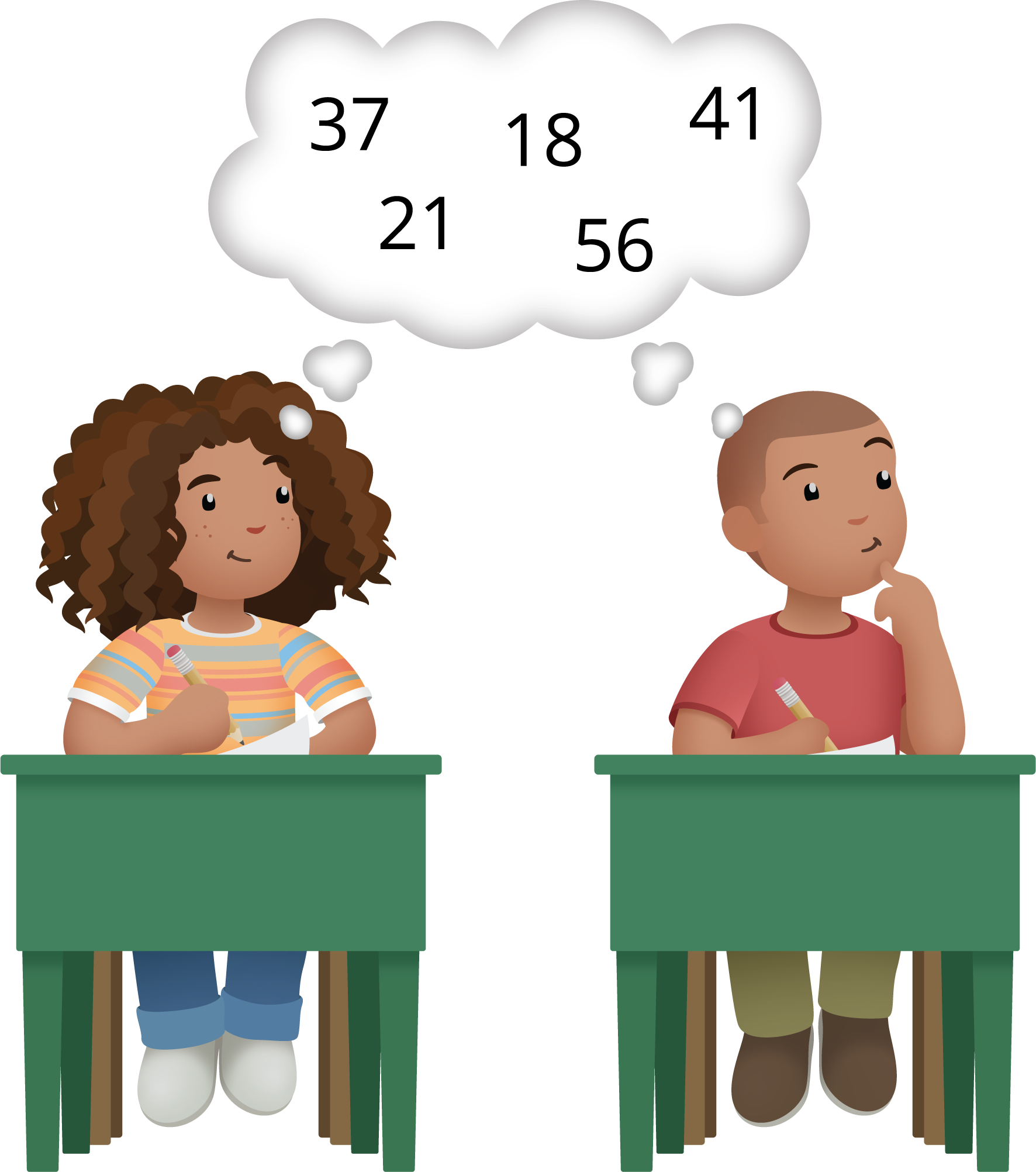 En cada caso, escribe una expresión de suma que tenga 2 números y que haga que la afirmación sea verdadera. Usa solo los números de arriba.