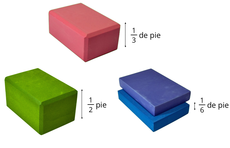 Andre hace una pila con 1 bloque de cada grosor. ¿La pila mide más de 1 pie de altura? Explica o muestra cómo lo sabes.