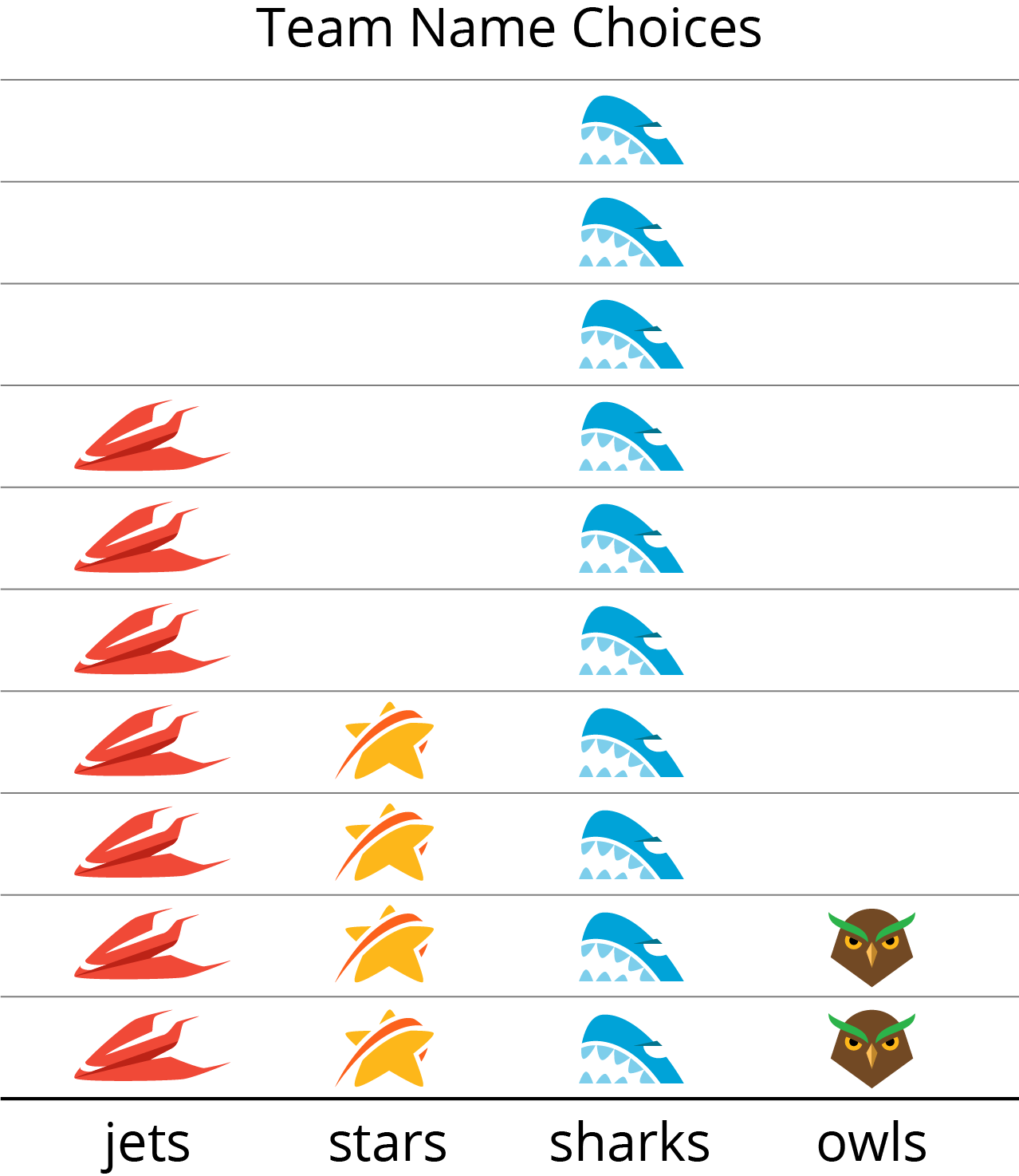 The purpose of this activity is for students to draw their own picture graphs to represent given data. Each student receives a data table to use. After drawing their own graphs, they share their graph with a partner and receive feedback on what is clear and what they could improve. As students represent the data and share their graphs with others, they notice and describe the features of picture graphs that make it easy for others to understand (MP3, MP6). While students are making their graphs, monitor for any features that many students leave out, such as titles or category labels, to emphasize when sharing in the Activity Synthesis.