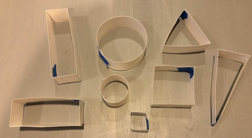 “Which shapes would you use to make an elephant?”(I would use a big square for the body and long rectangles for the legs and the trunk.)